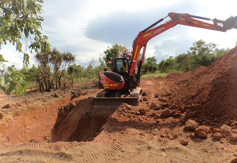 Our skilled team operate an extensive earth moving machinery fleet to deliver civil works services for both internal and external contract service requirements. Over 540 kilometres of minor roads connecting to the Central Arnhem Road and 20 Homeland airstrips are maintained by our team as we work to support ongoing access to remote Homelands. This can be particularly challenging during and after the wet season.